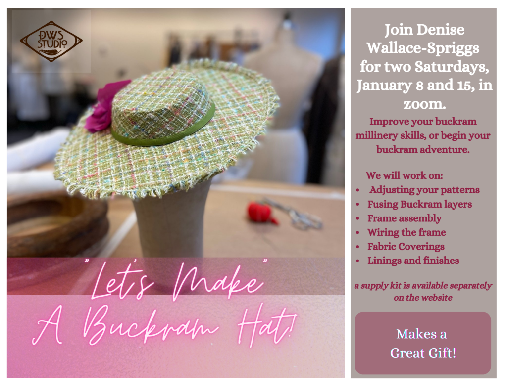 January 8 and 15: Millinery Basics-intro to Buckram (Two, three hour Sessions)